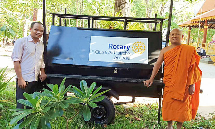 On behalf of Rotary E-Club 9790 Latrobe we were able to complete a fantastic project during our last visit to Siem Reap. The Rotary Club identified the need for the monks in Life and Hope Association to be able to store and transfer their tools when travelling to the village to build a Peace House. The trailer was custom built in Siem Reap and the shopping spree for tools also took place locally. The monks are thankful to be able to store their tools safely. Thanks to Rotary E-Club 9790 Latrobe and in particular Clive Walker for support in securing funding for this project.